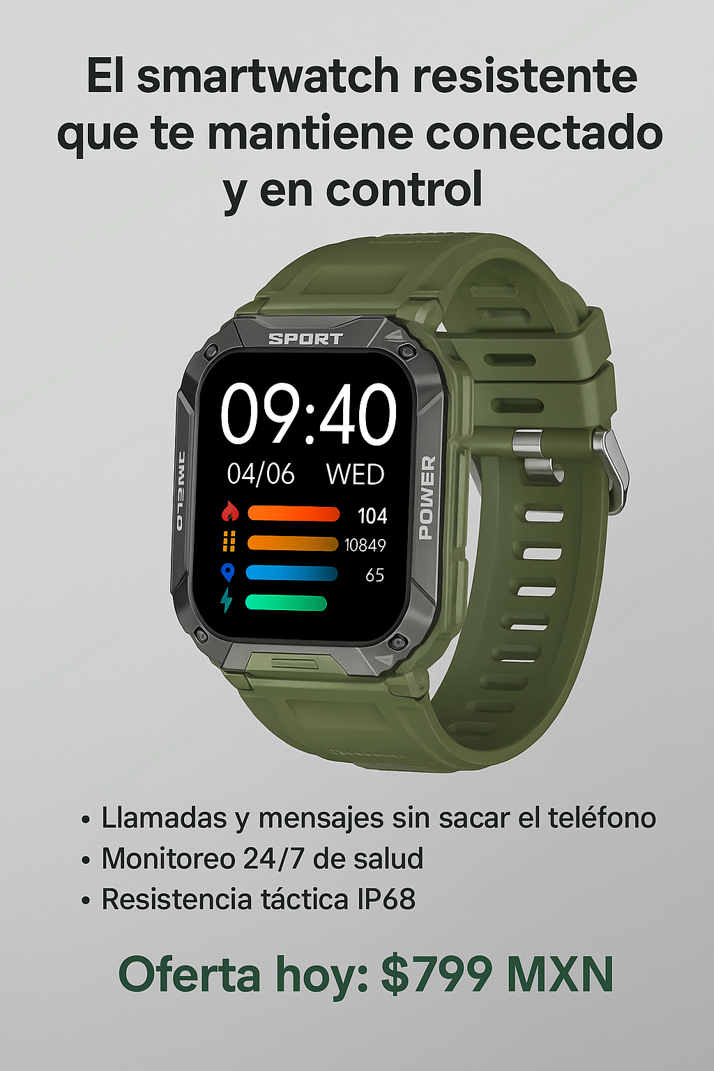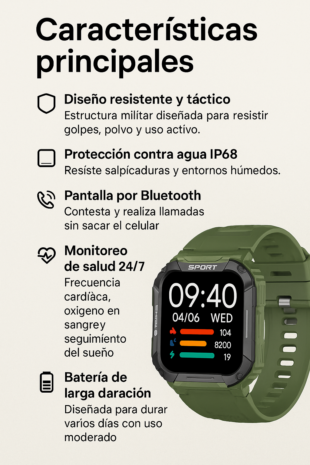 Cuenta con certificación IP68, lo que lo hace resistente a salpicaduras y uso diario en ambientes húmedos.