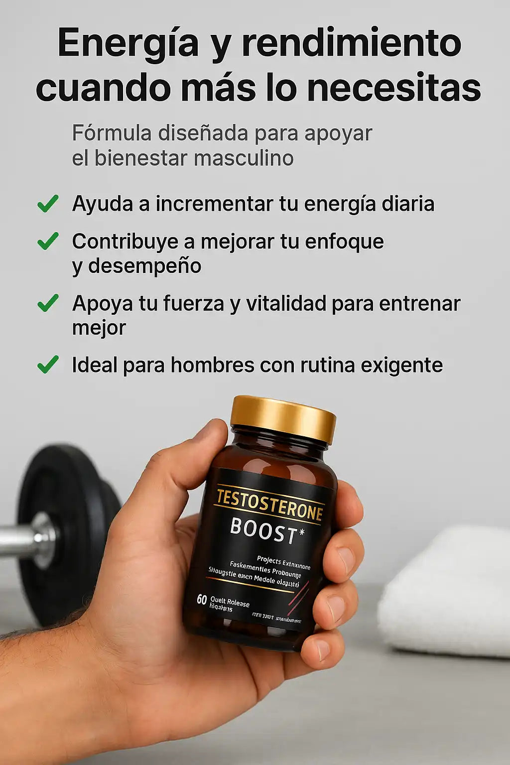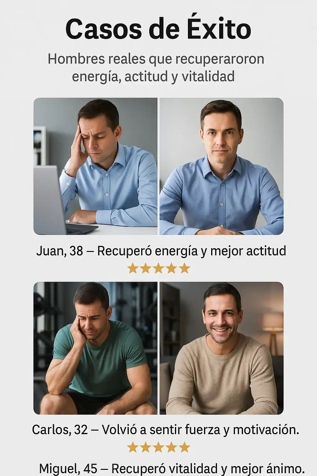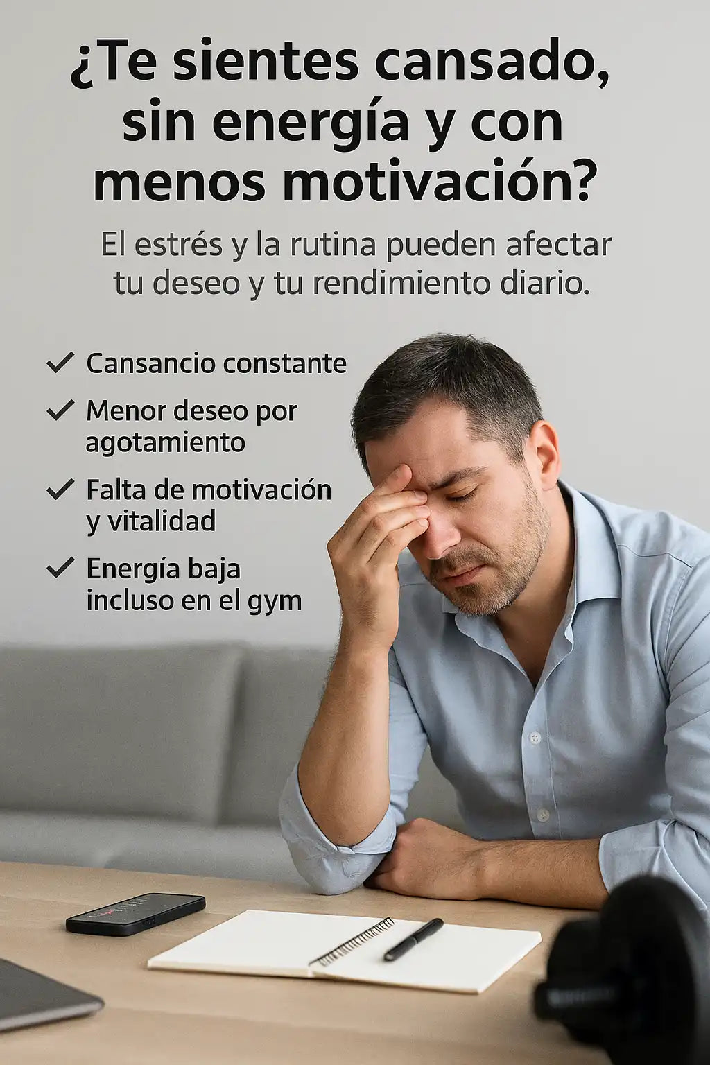Es un suplemento diseñado para apoyar la vitalidad, energía y bienestar masculino. Ayuda a hombres con rutinas exigentes que buscan sentirse más activos y con mejor actitud durante el día.