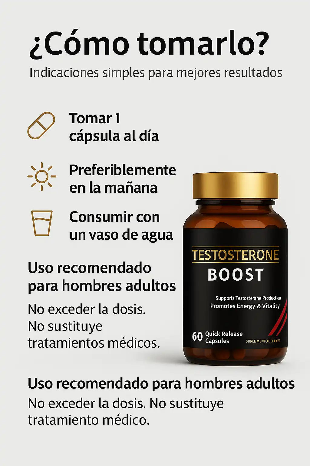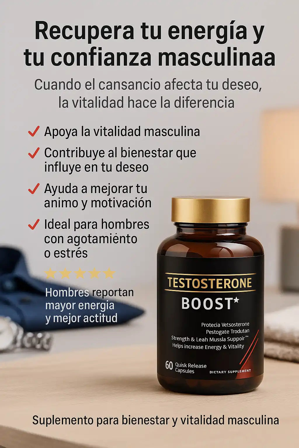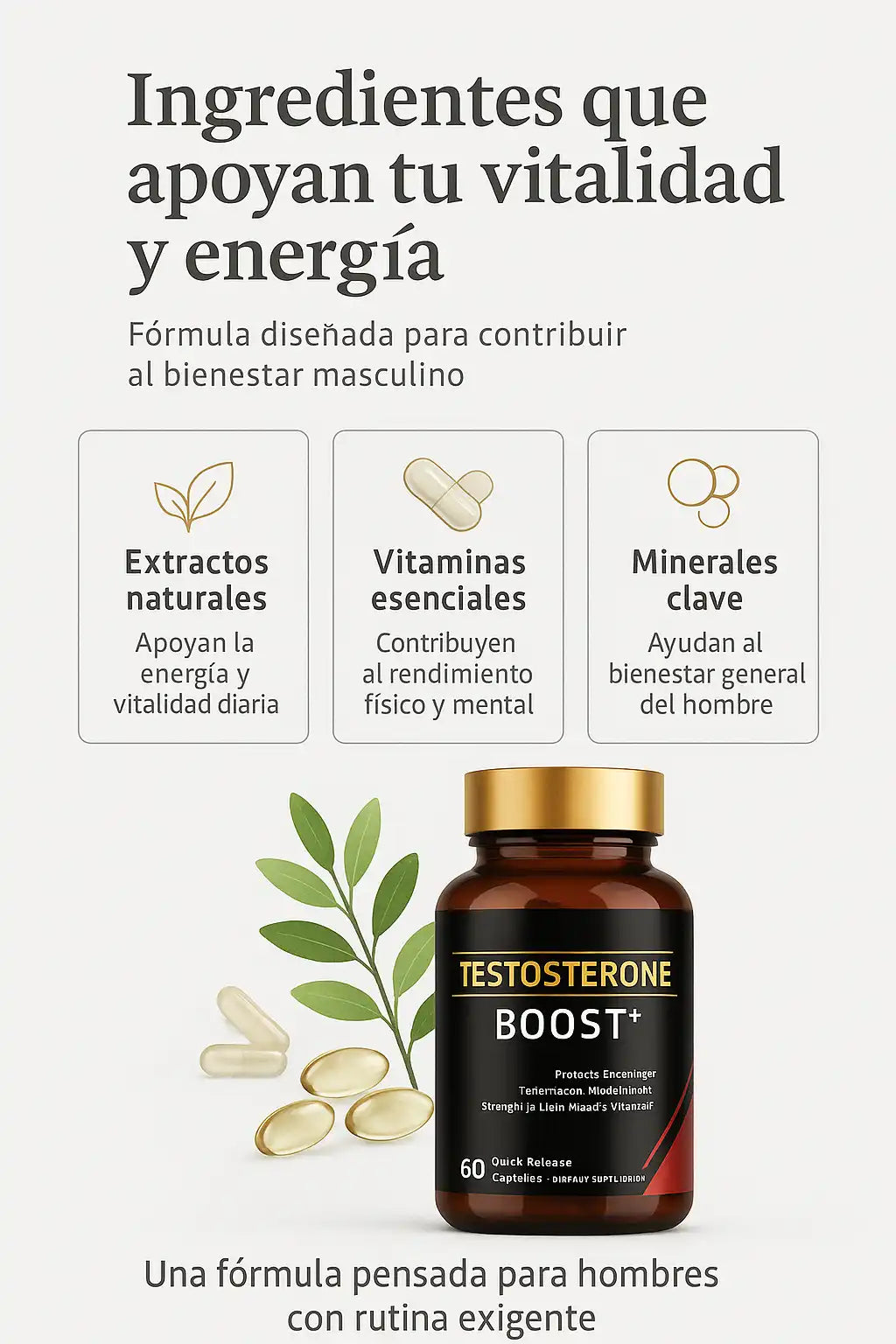 Es un suplemento diseñado para apoyar la vitalidad, energía y bienestar masculino. Ayuda a hombres con rutinas exigentes que buscan sentirse más activos y con mejor actitud durante el día.